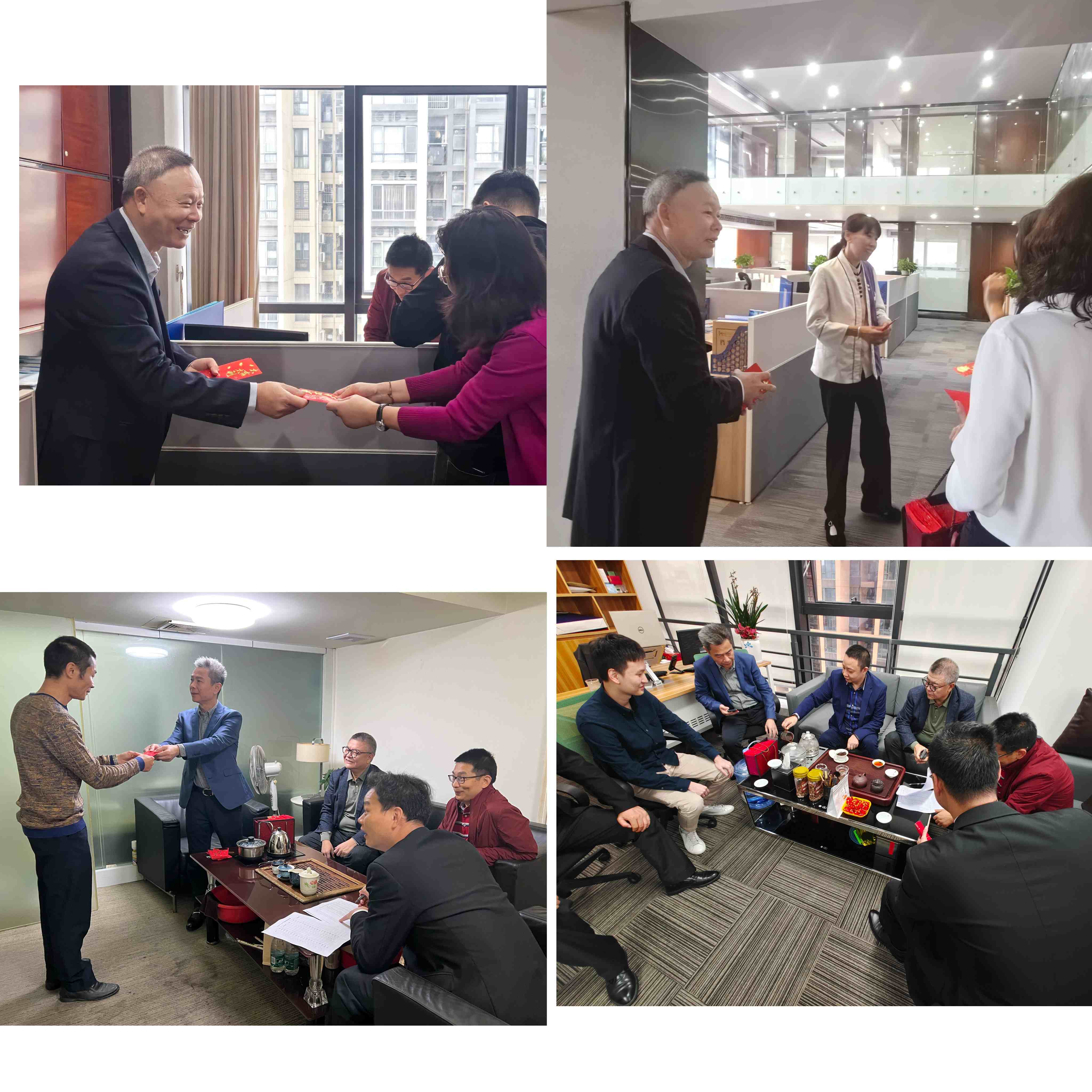 辭舊迎新,萬物復(fù)蘇,我們度過了一個祥和,歡樂,愉快的春節(jié)長假,2024年2月19日(正月初十)深圳市潤創(chuàng)興控股集團(tuán)公司正式開工啦!在此,祝愿潤創(chuàng)興集團(tuán)開工大吉、大展宏圖、一帆風(fēng)順、財源廣進(jìn)。同時,也祝愿潤創(chuàng)興集團(tuán)公司全體員工在新的一年里,身體健康,家庭幸福,心想事成,萬事如意!上午9:30,潤創(chuàng)興集團(tuán)公司黃亞水董事長在集團(tuán)總部各部門派發(fā)開工利是,并為全體員工送上新年祝福。上午10:00,集團(tuán)公司吳椰軍總經(jīng)理、張海波、羅勇和黃華輝三位副總,共同代表集團(tuán)公司董事長到集團(tuán)各下屬公司,各項目管理處派發(fā)開工利是。一年之計在于春,新春伊始,新起點,新征程,我們將團(tuán)結(jié)一致,為完成今年的各項工作任務(wù)和既定目標(biāo),開好頭,起好步,全力以赴。